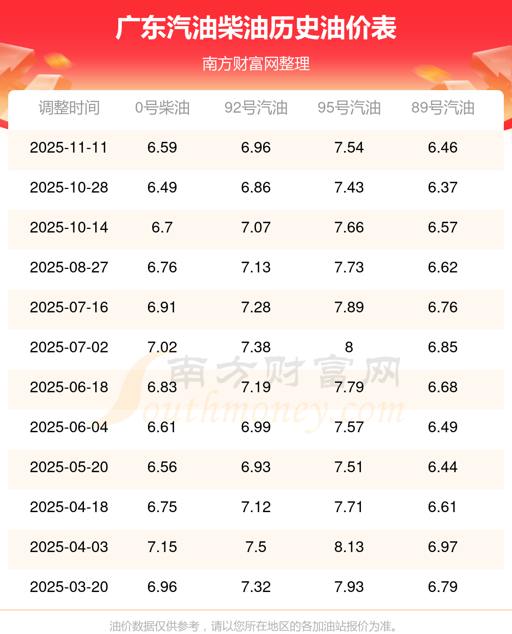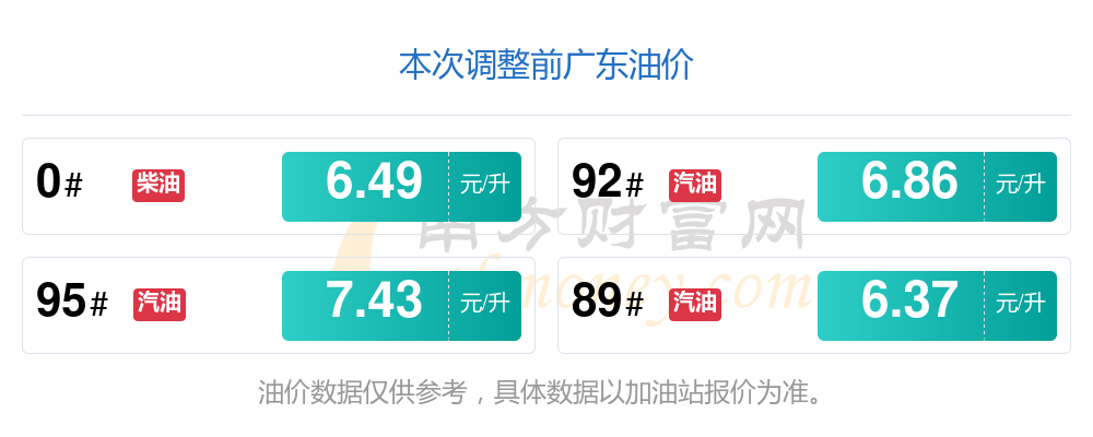 廣東92號(hào)汽油油價(jià)調(diào)整表