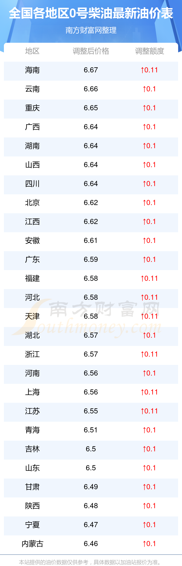 附:全國(guó)各地區(qū)0號(hào)柴油油價(jià)一覽表