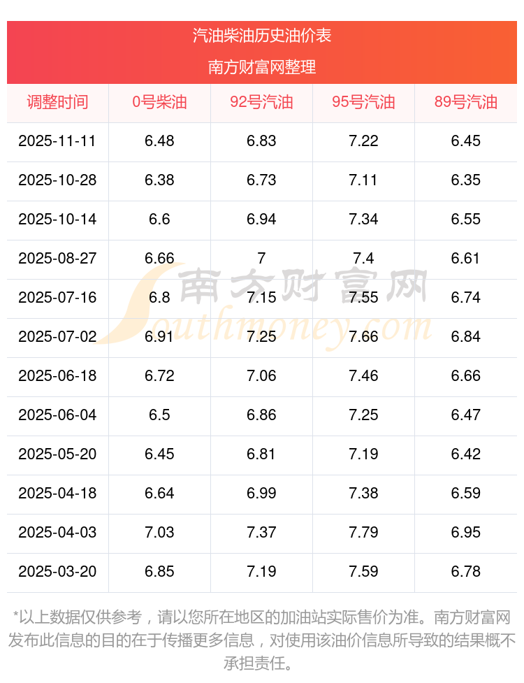 11月15日楊凌92號(hào)汽油的價(jià)格為11月11日油價(jià)調(diào)整后的價(jià)格,每升6.83元,對(duì)比上一輪油價(jià)調(diào)整時(shí)間10月28日的價(jià)格6.73元每升,上調(diào)了0.1元,上調(diào)幅達(dá)1.486%。下一輪油價(jià)調(diào)整時(shí)間11月24日24時(shí),距離現(xiàn)在還有9.21天。
