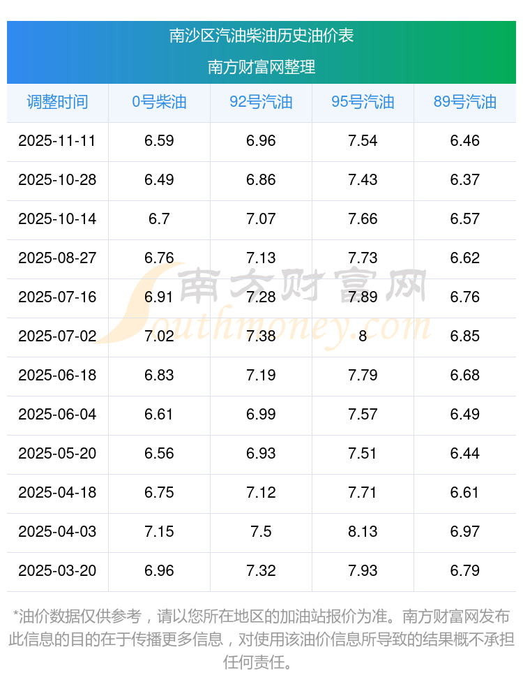 2025年南沙區(qū)汽油價(jià)格一覽表