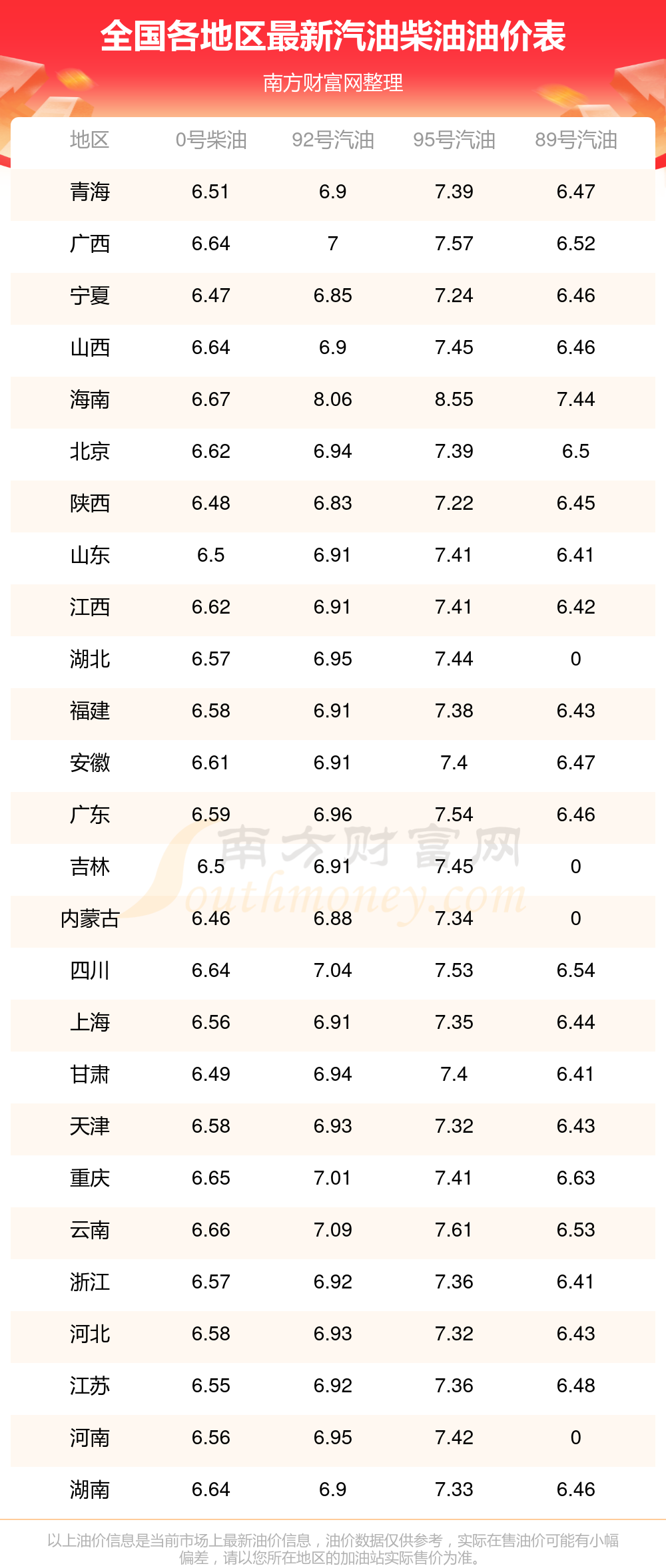 以上油價(jià)信息是當(dāng)前市場(chǎng)上最新油價(jià)信息,油價(jià)數(shù)據(jù)僅供參考,實(shí)際在售油價(jià)可能有小幅偏差,請(qǐng)以您所在地區(qū)的加油站實(shí)際售價(jià)為準(zhǔn)。