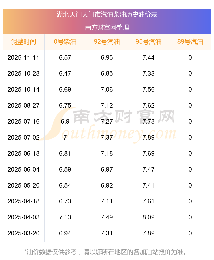 湖北天門天門市歷史油價(jià)表