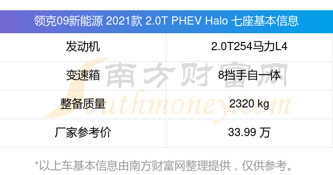 在動(dòng)力方面,領(lǐng)克09新能源 2021款 2.0T PHEV Halo 七座搭載的是一臺(tái)2.0T254馬力L4渦輪增壓發(fā)動(dòng)機(jī),匹配8擋手自一體自動(dòng)檔變速箱,燃料形式為插電式混合動(dòng)力,常規(guī)整備質(zhì)量2320kg,廠家參考價(jià)33.99萬元。
