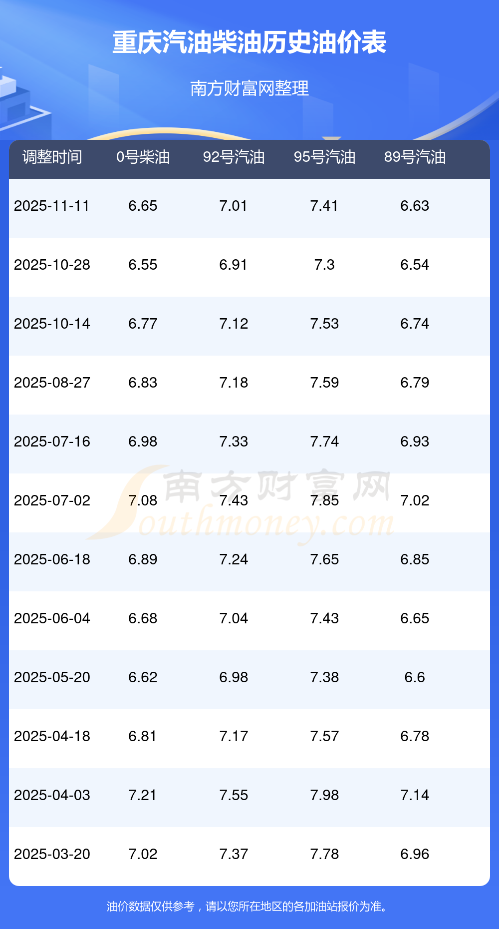 (11月15日)92、95號(hào)汽油價(jià)格一覽表