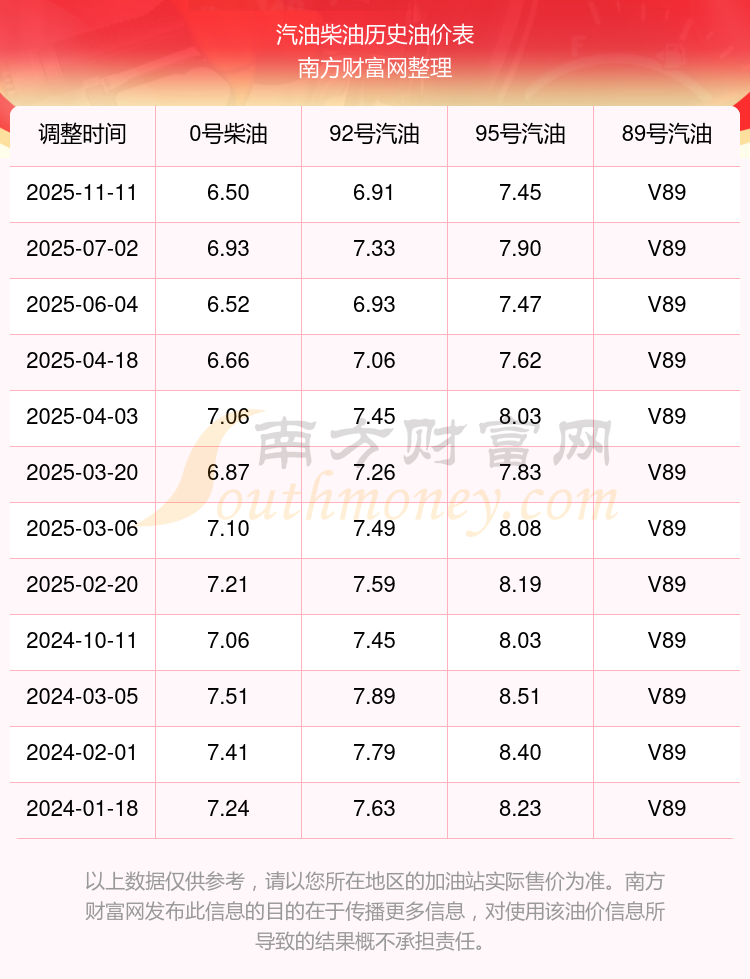 2025年92號汽油價格一覽表