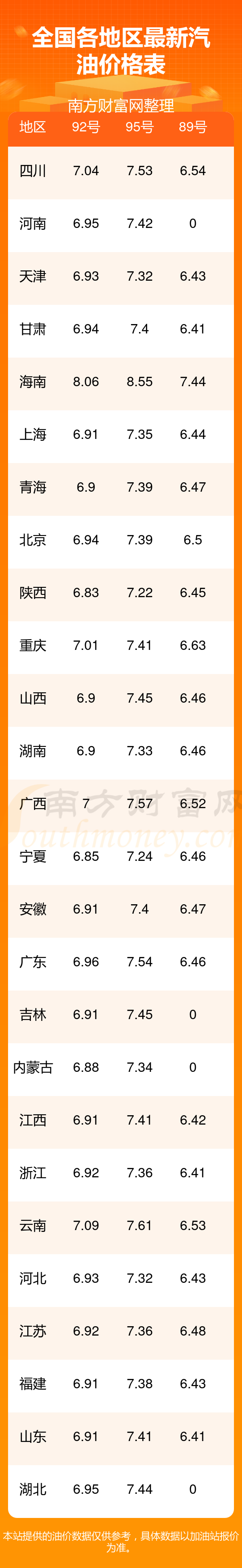 以上油價信息是當(dāng)前市場上最新油價信息,油價數(shù)據(jù)僅供參考,實際在售油價可能有小幅偏差,請以您所在地區(qū)的加油站實際售價為準(zhǔn)。