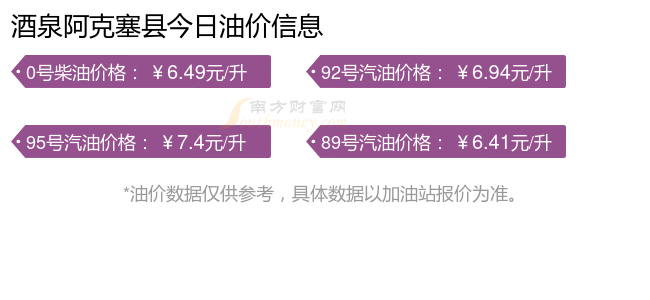 酒泉阿克塞縣汽油、柴油11月15日每升的價格為:92號汽油6.94元;95號汽油7.4元;89號汽油6.41元;0號柴油6.49元,本次油價調(diào)整時間是11月11日。