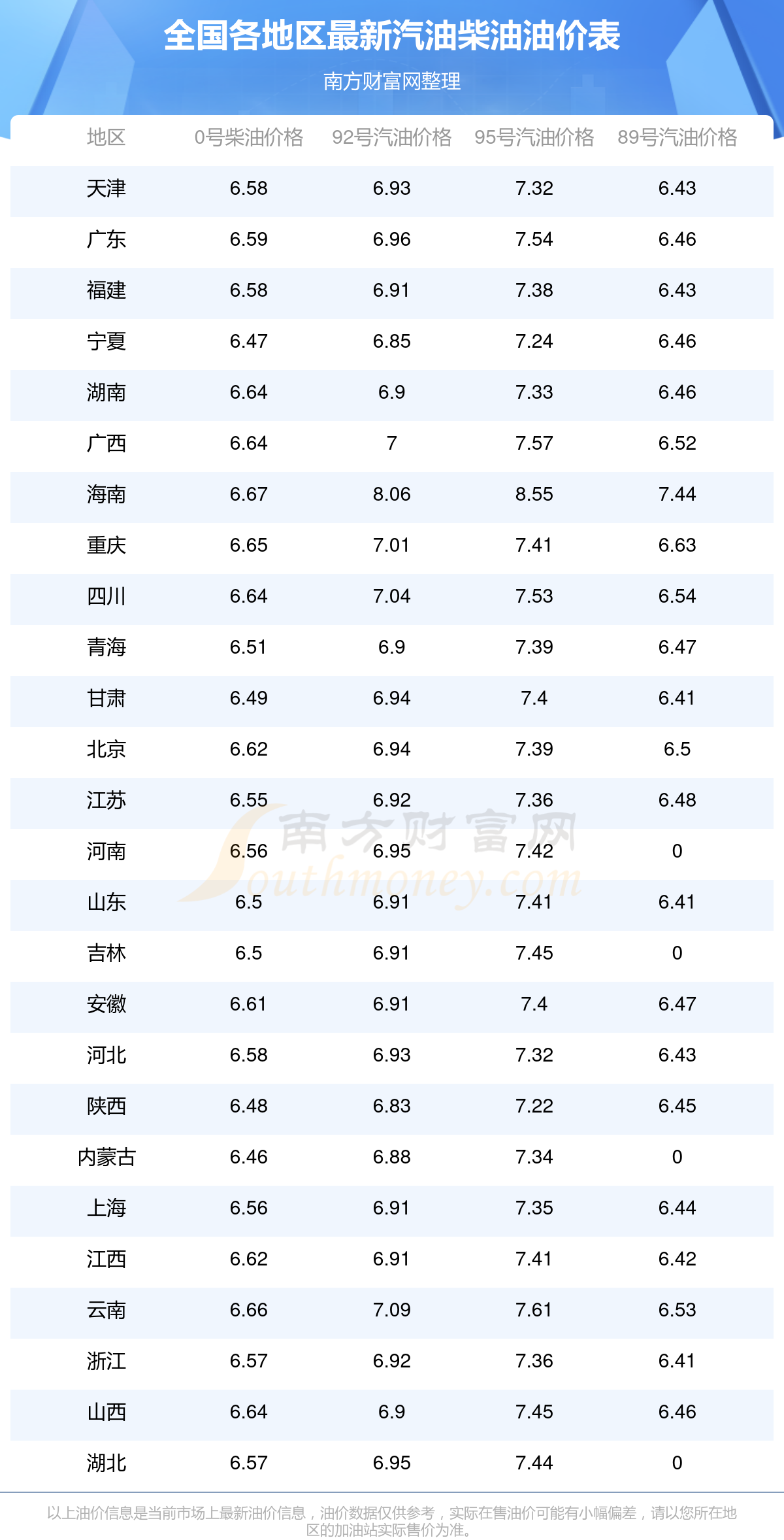 2025年11月15日全國油價調(diào)整及最新汽油價格表