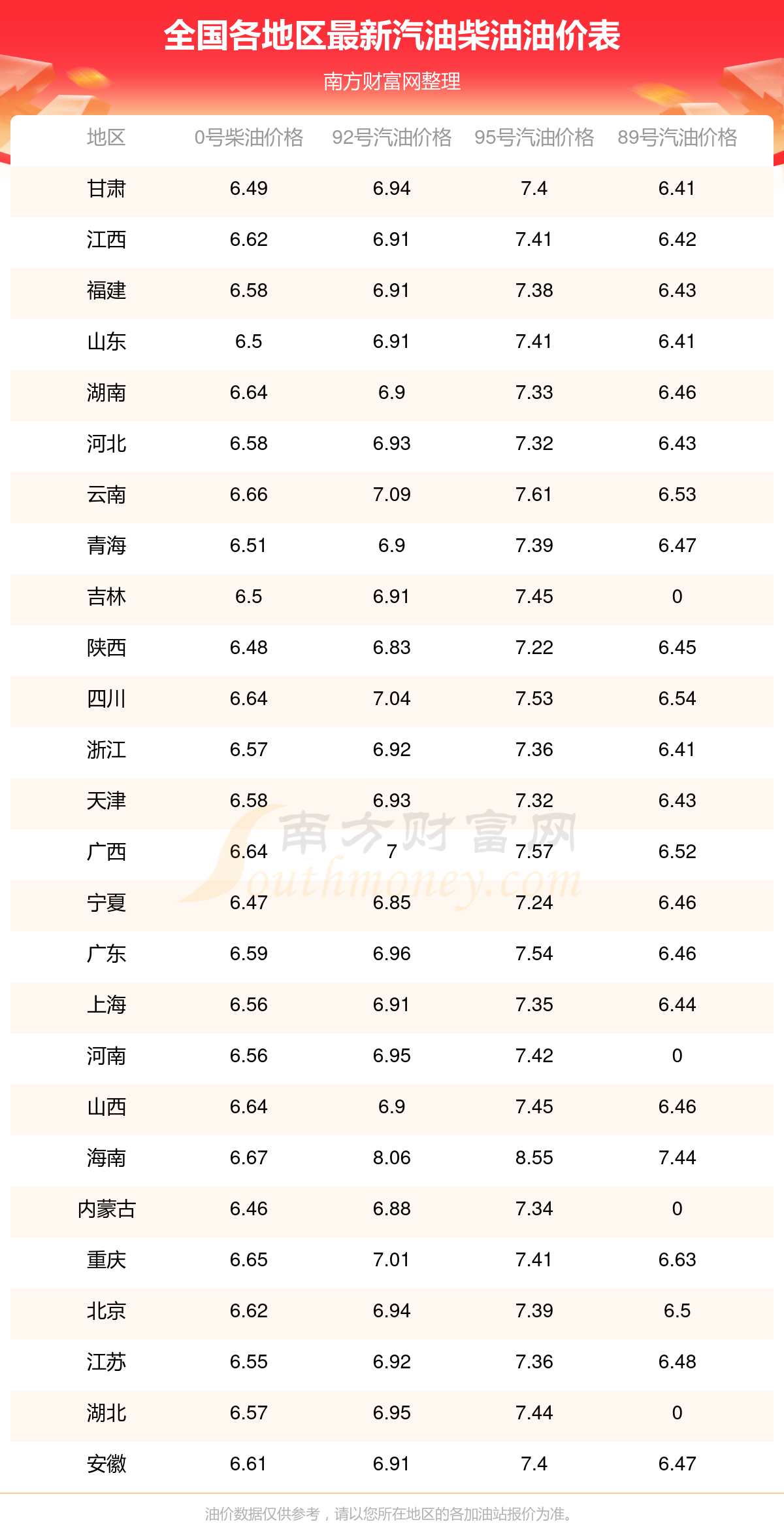 以上油價信息是當前市場上最新油價信息,油價數(shù)據(jù)僅供參考,實際在售油價可能有小幅偏差,請以您所在地區(qū)的加油站實際售價為準。