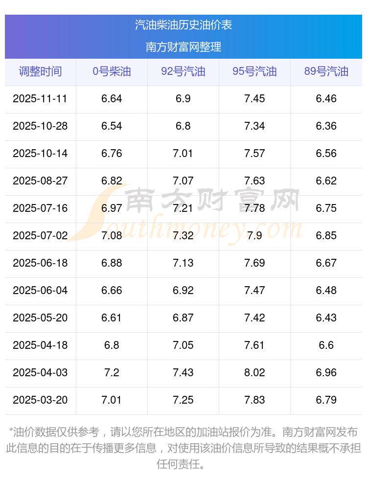 11月15日大同92號汽油的價格為6.9元/升,為11月11日油價調(diào)整后的價格,相對上次調(diào)整增了0.1元,增1.471%。下一輪油價調(diào)整時間11月24日24時,距離現(xiàn)在還有9.13天。