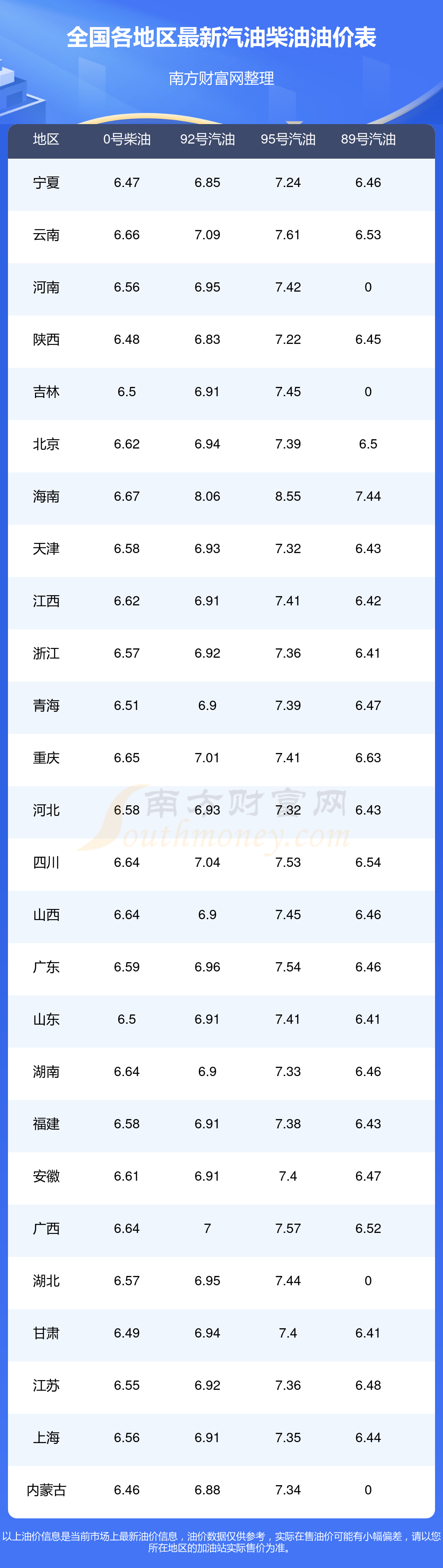 2025年11月15日全國油價(jià)調(diào)整及最新汽油價(jià)格表