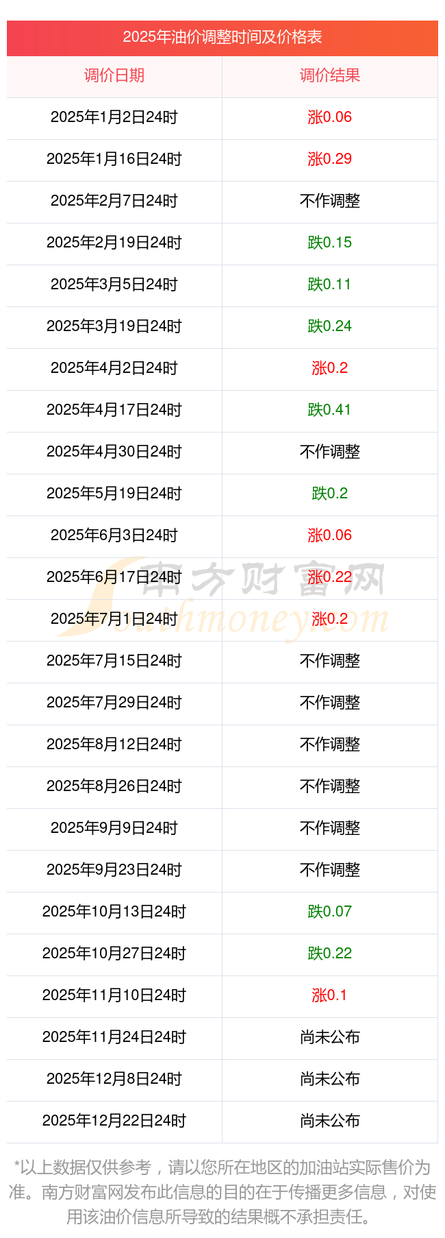 2025年武川縣11月15日油價(jià)調(diào)整時(shí)間表