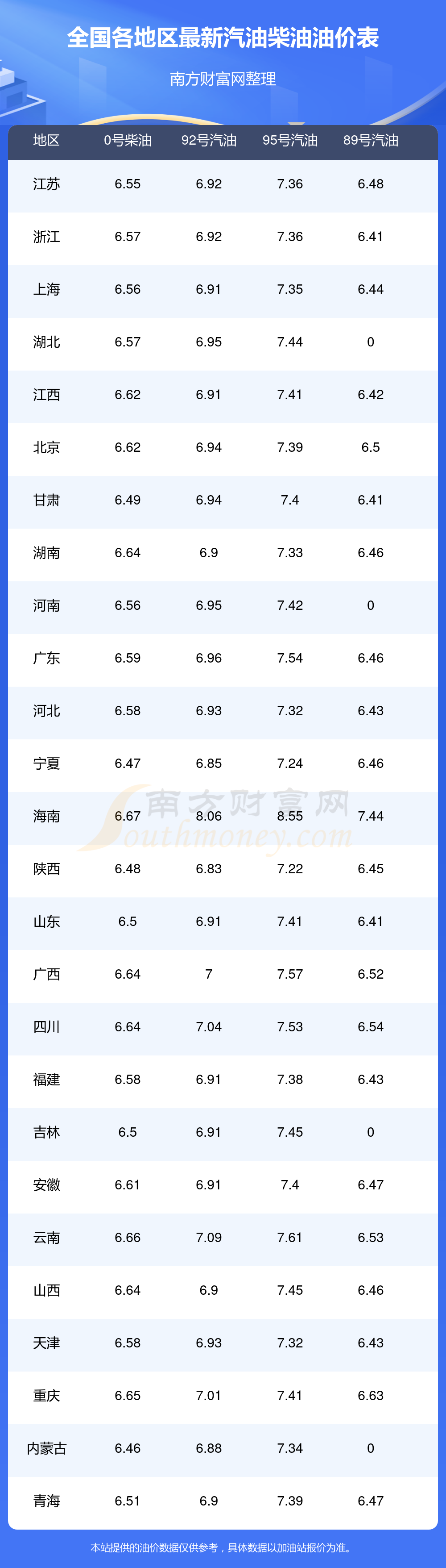 以上油價(jià)信息是當(dāng)前市場(chǎng)上最新油價(jià)信息,油價(jià)數(shù)據(jù)僅供參考,實(shí)際在售油價(jià)可能有小幅偏差,請(qǐng)以您所在地區(qū)的加油站實(shí)際售價(jià)為準(zhǔn)。