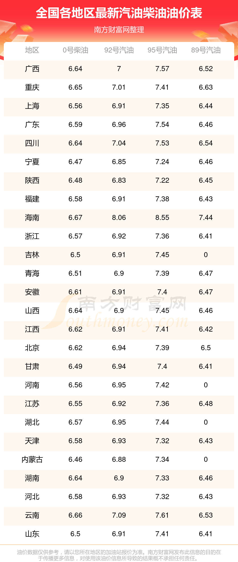 2025年11月15日全國油價調(diào)整及最新汽油價格表