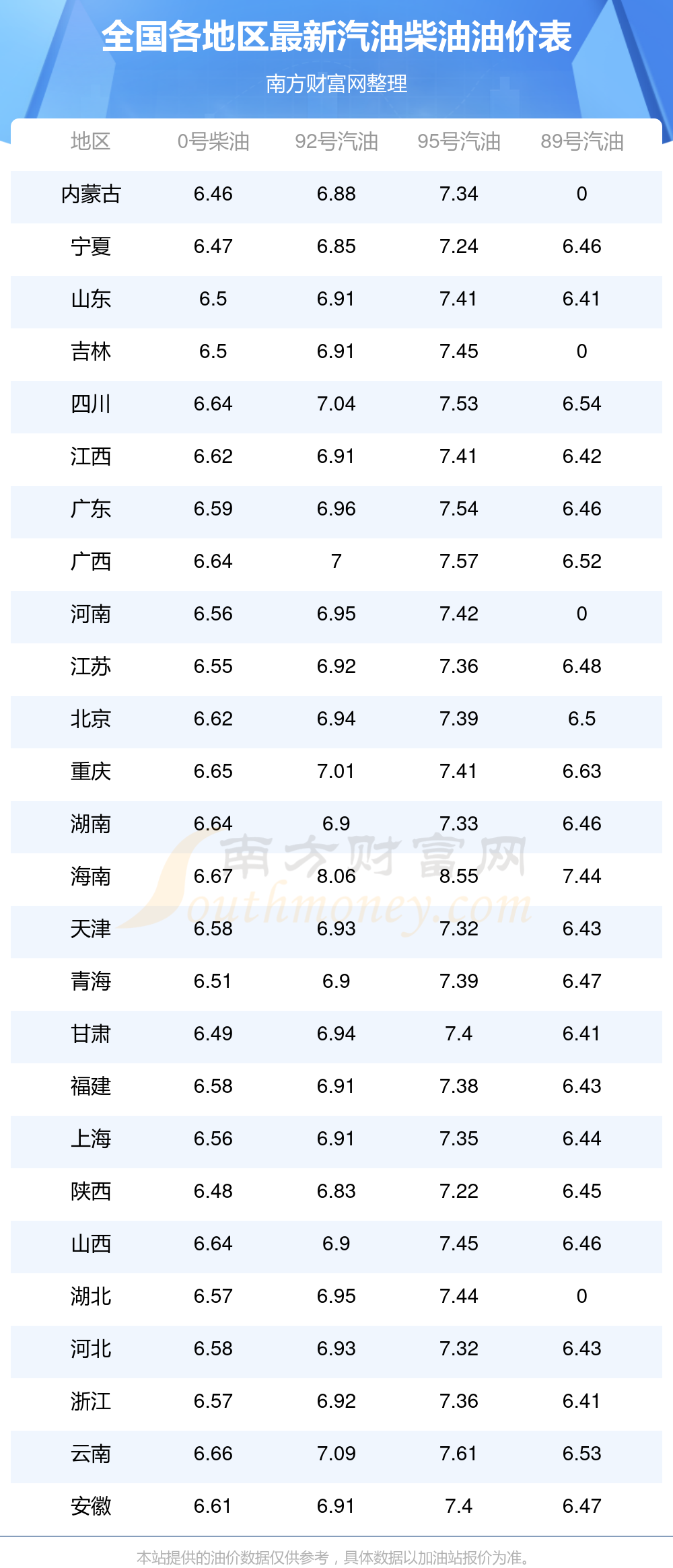 以上油價(jià)信息是當(dāng)前市場(chǎng)上最新油價(jià)信息,油價(jià)數(shù)據(jù)僅供參考,實(shí)際在售油價(jià)可能有小幅偏差,請(qǐng)以您所在地區(qū)的加油站實(shí)際售價(jià)為準(zhǔn)。