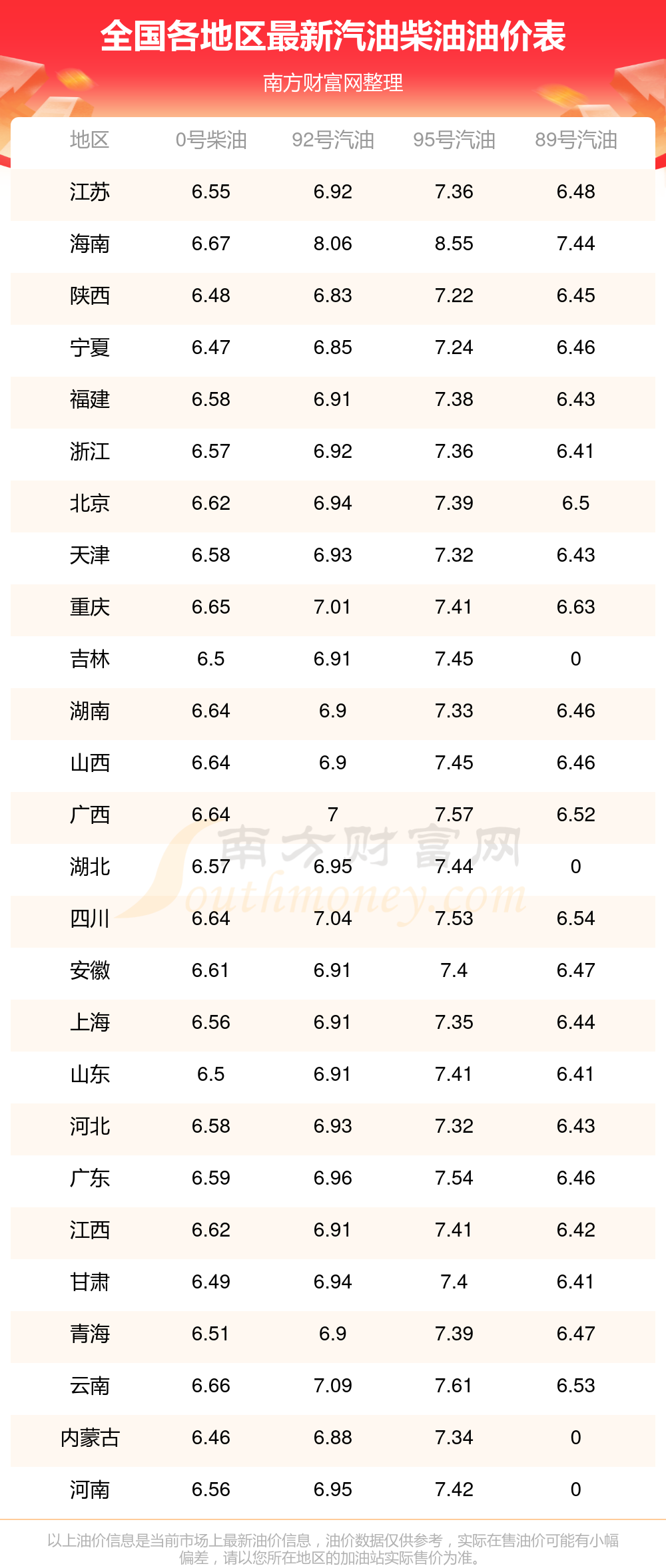 2025年11月15日全國各地油價(jià)調(diào)整及最新汽油價(jià)格表
