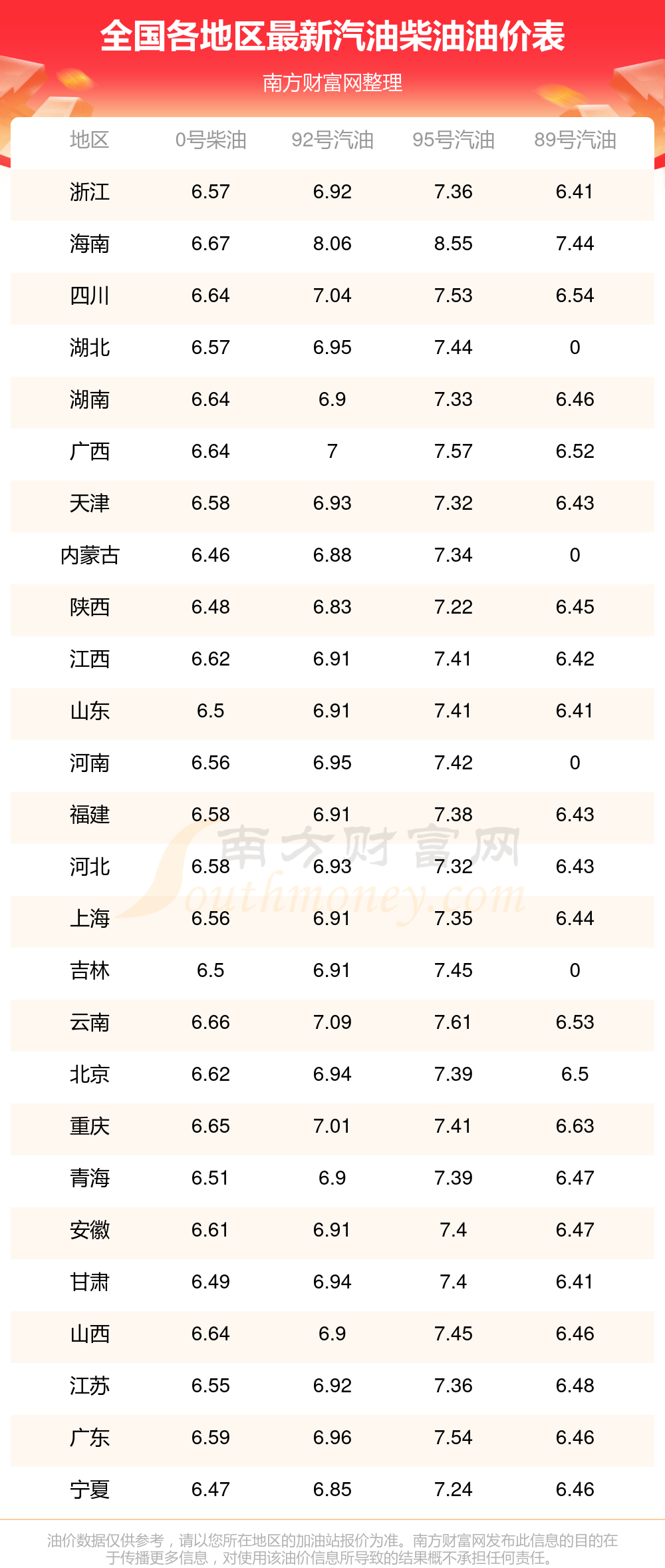 油價數(shù)據(jù)僅供參考,請以您所在地區(qū)的加油站報價為準(zhǔn)。南方財富網(wǎng)發(fā)布此信息的目的在于傳播更多信息,對使用該油價信息所導(dǎo)致的結(jié)果概不承擔(dān)任何責(zé)任。