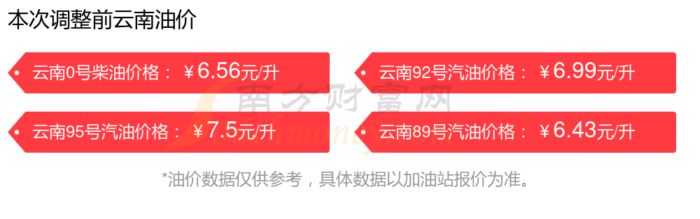 11月16日,云南汽油、柴油每升的價(jià)格為:92號(hào)汽油7.09元,上升了0.1元;95號(hào)汽油7.61元,上升了0.11元;89號(hào)汽油6.53元,上升了0.1;0號(hào)柴油為6.66元,上升了0.1元,本輪調(diào)整時(shí)間是11月11日。