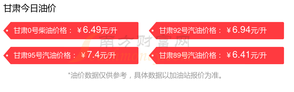 油價調(diào)整最新消息:甘肅汽油、柴油11月16日每升最新價格為11月11日調(diào)整后的價格,92號汽油為6.94元,上升了0.11元;95號汽油為7.4元,上升了0.1元;89號汽油為6.41元,上升了0.09;0號柴油為6.49元,上升了0.1元。下一輪油價調(diào)整時間11月24日24時。