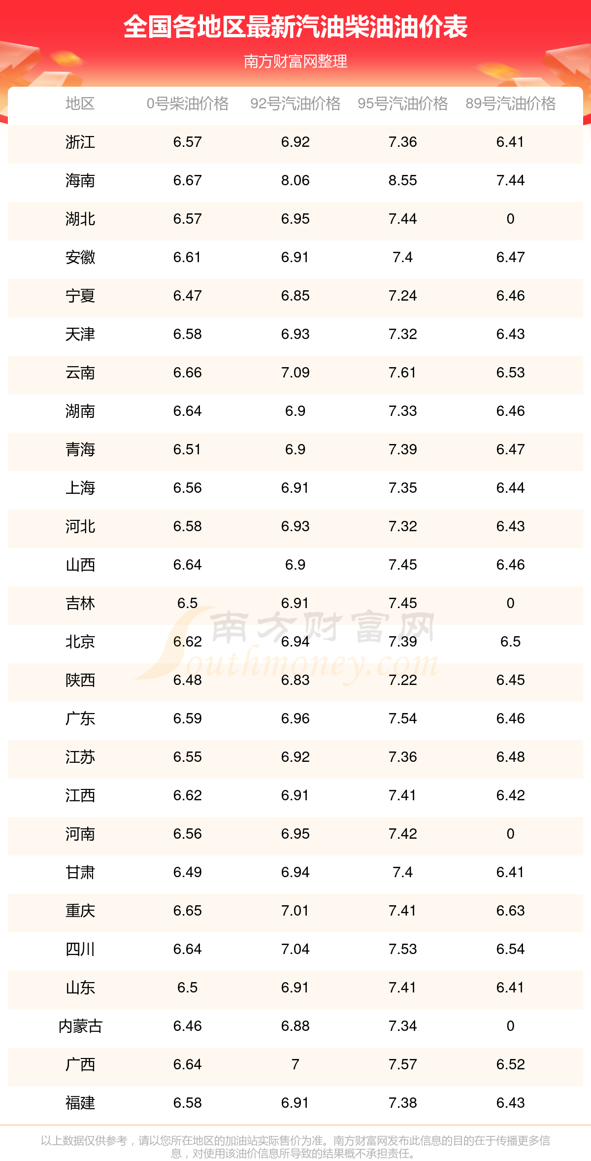 全國89號汽油11月16日的最新價格是11月11日油價調(diào)整后的價格,詳情如下:平均價格為7元/升,最低的是浙江,價格6.41元/升,最高的是海南,價格7.44元/升。下一輪油價調(diào)整時間11月24日24時,距離現(xiàn)在還有8.68天。