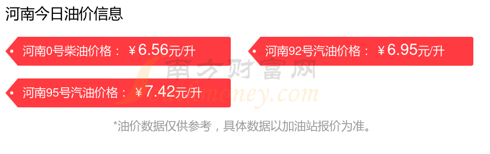 鄭州汽油、柴油11月16日每升的價格為(油價調(diào)整時間是11月11日):92號汽油6.95元;95號汽油7.42元;0號柴油6.56元。鄭州下一輪油價調(diào)整時間11月24日24時,距離現(xiàn)在還有8.68天。