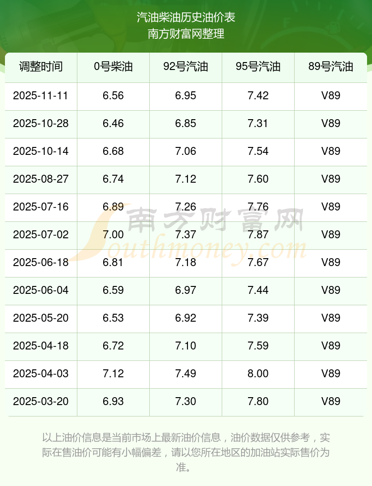 11月16日河南平頂山92號汽油的價格為6.95元每升,本次調(diào)整時間為11月11日,相對上次調(diào)整時間10月28日的油價6.85元每升,漲了0.1元,漲幅達1.46%。下一輪油價調(diào)整時間11月24日24時,距離現(xiàn)在還有8.68天。