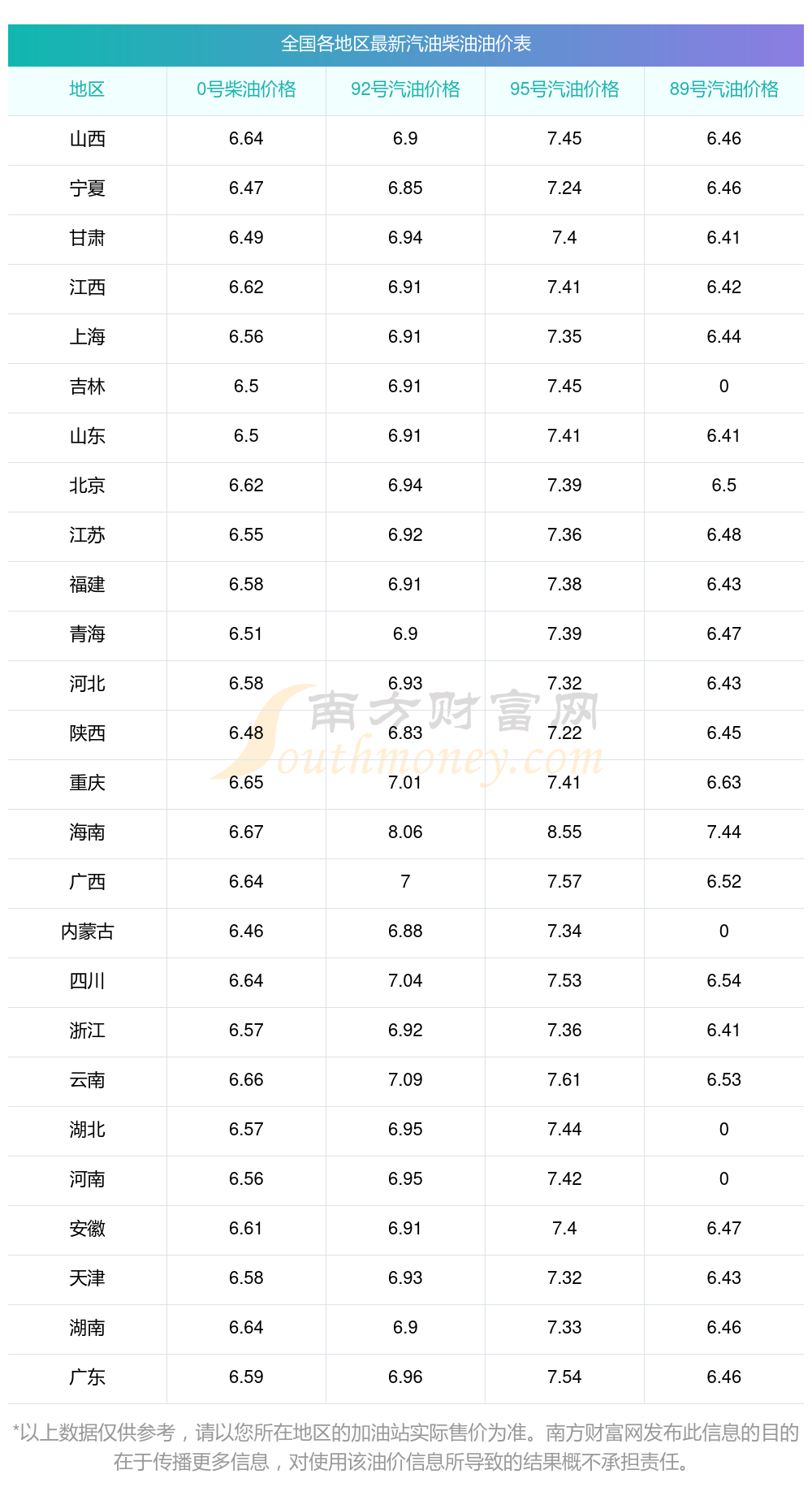 全國0號柴油平均價格為:7元每升,其中,最低為內(nèi)蒙古,價格6.46元/升,最高為海南,價格6.67元/升。