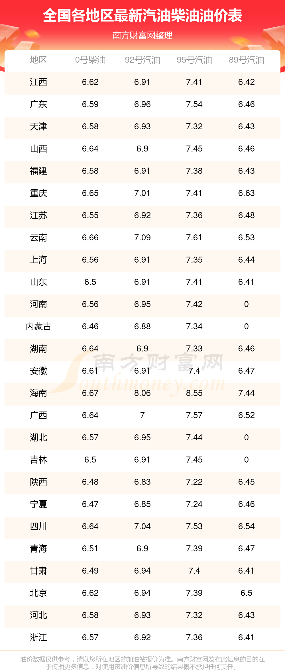 全國(guó)92號(hào)汽油最新平均價(jià)格為:7元每升,其中,最低為陜西,價(jià)格為6.83元/升,最高為海南,價(jià)格為8.06元/升。