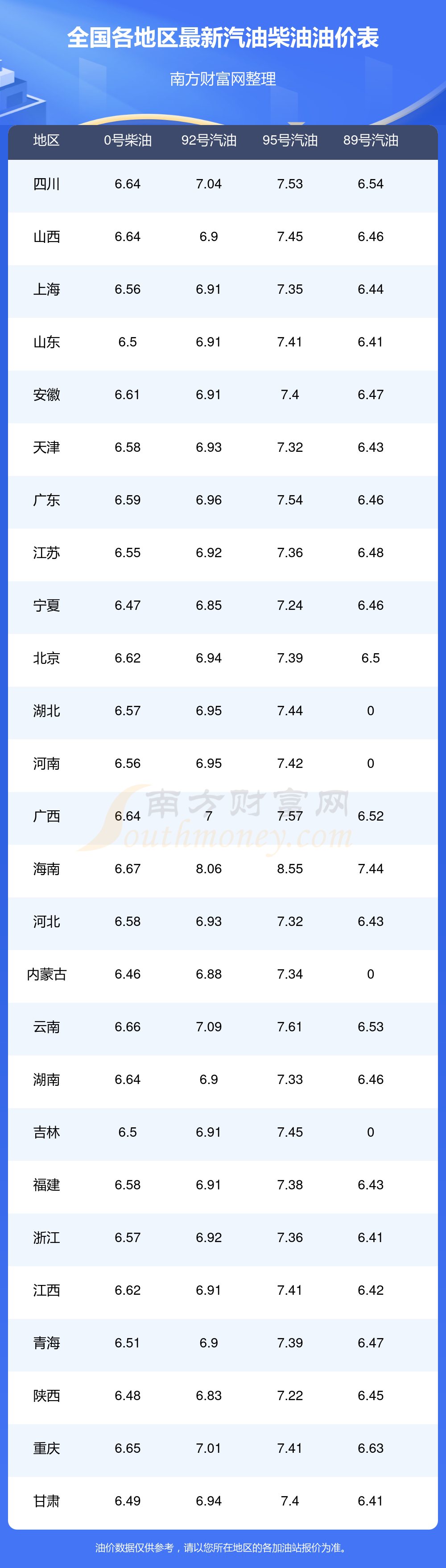 今日92號(hào)95號(hào)98號(hào)汽油價(jià)格(11月16日)
