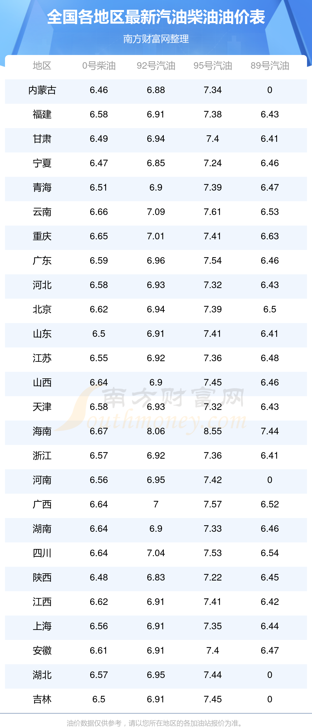油價(jià)數(shù)據(jù)僅供參考,請(qǐng)以您所在地區(qū)的各加油站報(bào)價(jià)為準(zhǔn)。