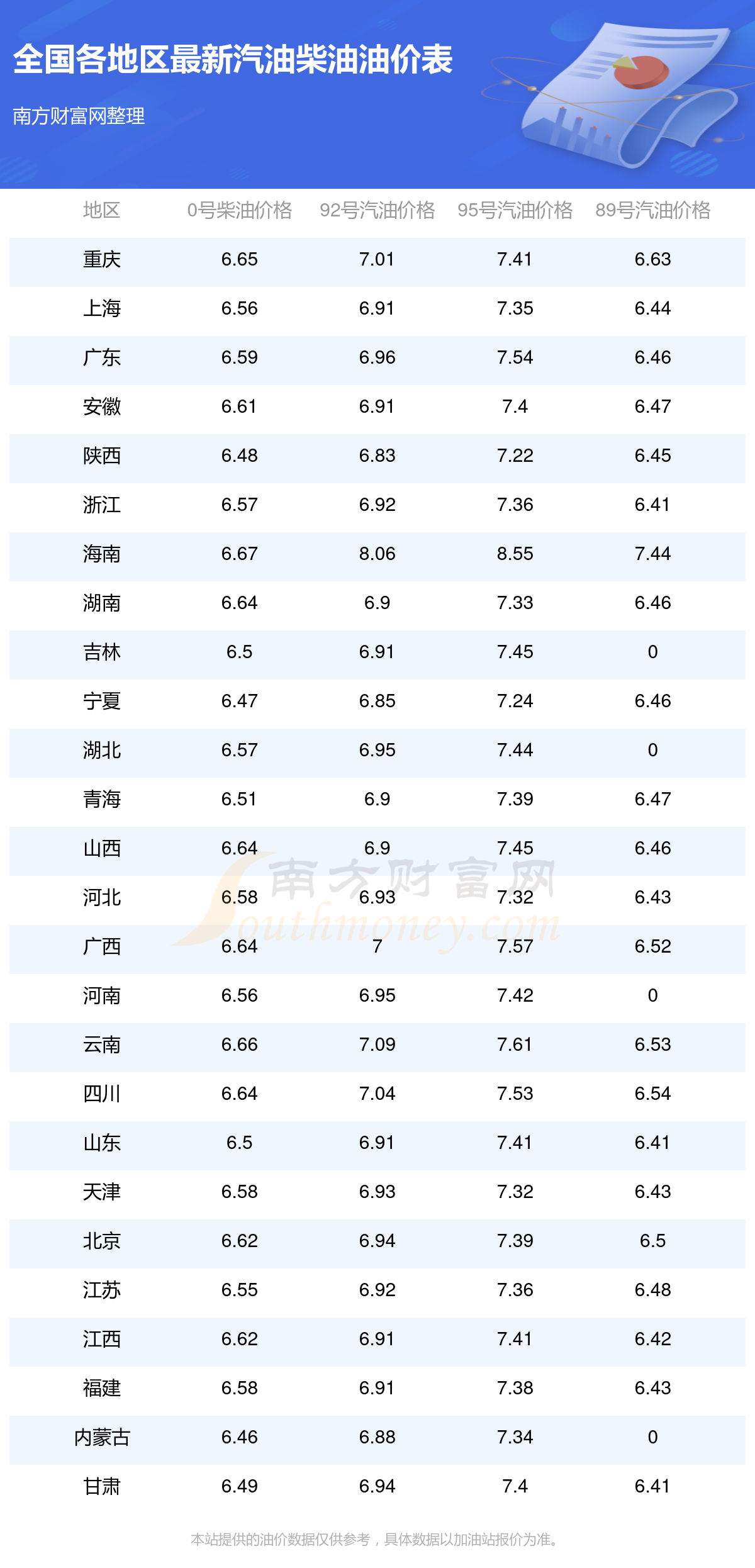 2025年全國各地區(qū)最新油價表
