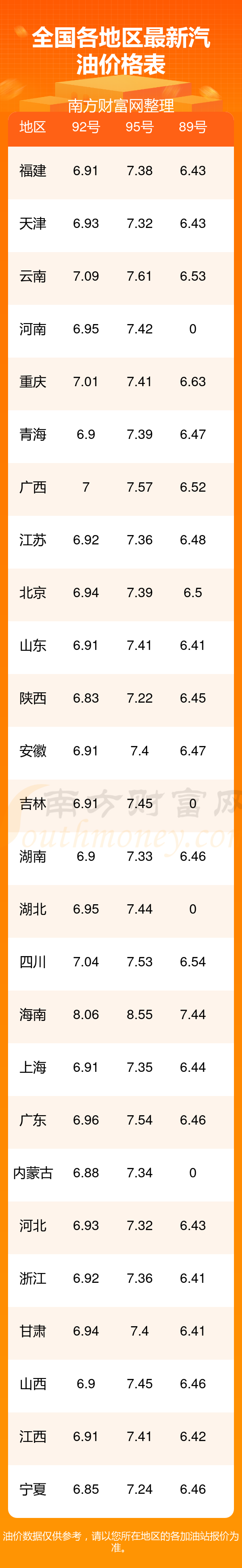 油價調(diào)整最新消息:油價最新調(diào)整時間為11月11日 ,全國92號汽油最新平均價格為:7元每升,其中,最高為海南,價格為8.06元/升,最低為陜西,價格為6.83元/升。全國95號汽油最新平均價格為:7元每升,其中,最高為海南,價格為8.55元/升,最低為陜西,價格為7.22元/升。全國0號柴油最新平均價格為:7元每升,其中,最高為海南,價格為6.67元/升,最低為內(nèi)蒙古,價格為6.46元/升。全國89號汽油最新平均價格為:7元每升,其中,最高為海南,價格為7.44元/升,最低為浙江,價格為6.41元/升。下一輪汽油價格調(diào)整時間11月24日24時,距離現(xiàn)在還有8.62天。