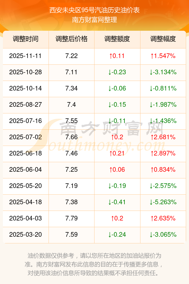 西安未央?yún)^(qū)95號(hào)汽油歷史油價(jià)表