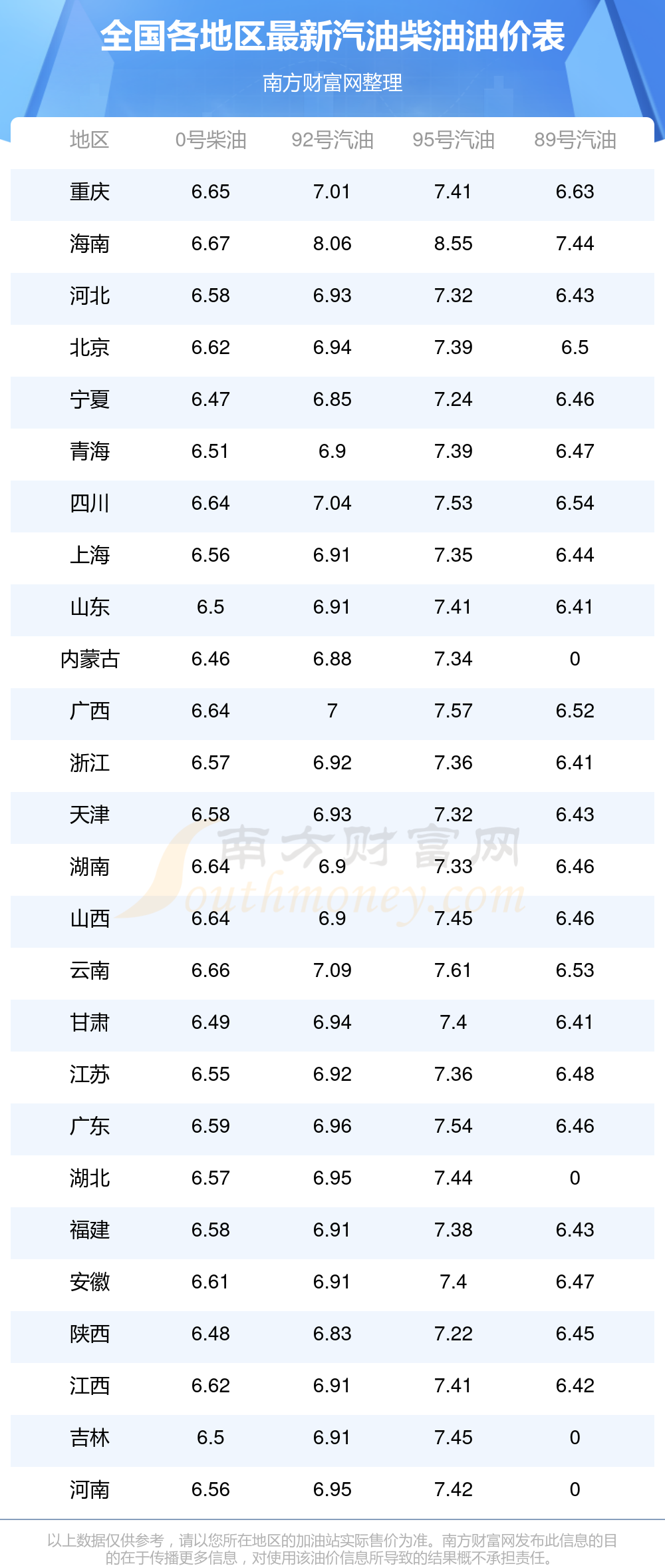 以上油價(jià)信息是當(dāng)前市場(chǎng)上最新油價(jià)信息,油價(jià)數(shù)據(jù)僅供參考,實(shí)際在售油價(jià)可能有小幅偏差,請(qǐng)以您所在地區(qū)的加油站實(shí)際售價(jià)為準(zhǔn)。