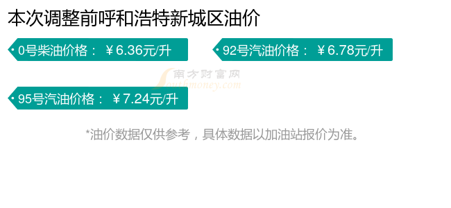 呼和浩特新城區(qū)汽油柴油11月16日每升的價格為11月11日調(diào)整后的價格,各油價詳情如下:92號汽油6.88元;95號汽油7.34元;0號柴油6.46元。