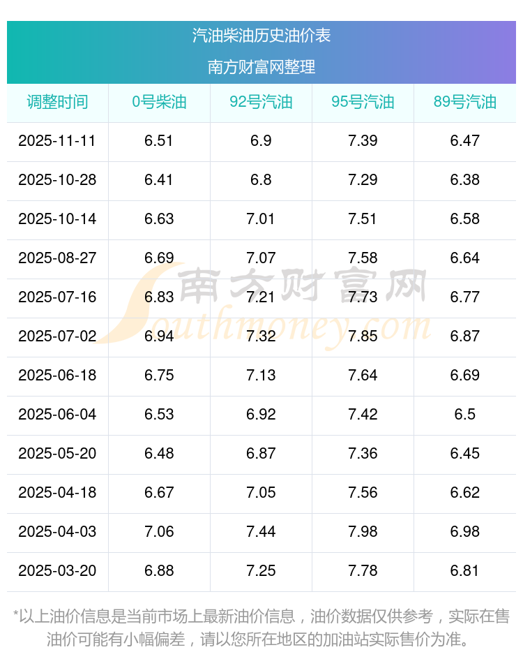 11月16日青海黃南92號汽油的價格為11月11日油價調整后的價格,具體是每升6.9元,相對上次調整時間10月28日的油價6.8元每升,共上調了0.1元,上調1.471%。下一輪油價調整時間11月24日24時,距離現(xiàn)在還有8.57天。