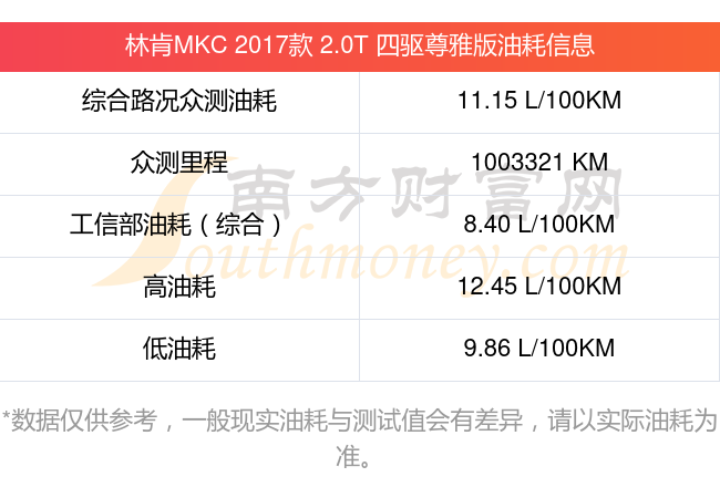 根據(jù)車主實(shí)測(cè)數(shù)據(jù),該車型低油耗為9.86L/100km,高油耗為12.45L/100km,綜合路況眾測(cè)油耗為11.15L/100km,工信部綜合油耗為8.40L/100km。