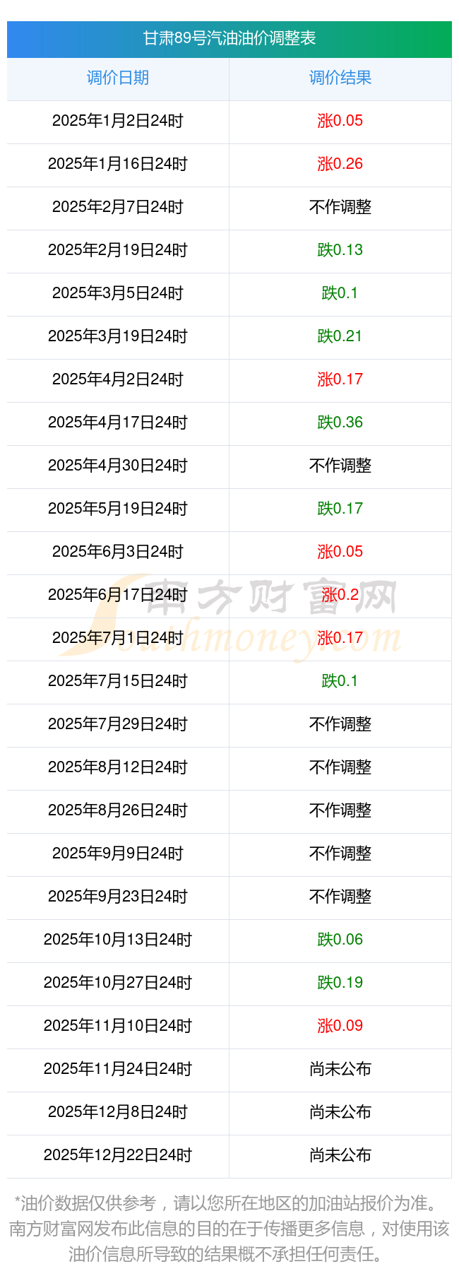 2025年甘肅蘭州油價(jià)調(diào)整日歷時(shí)間表