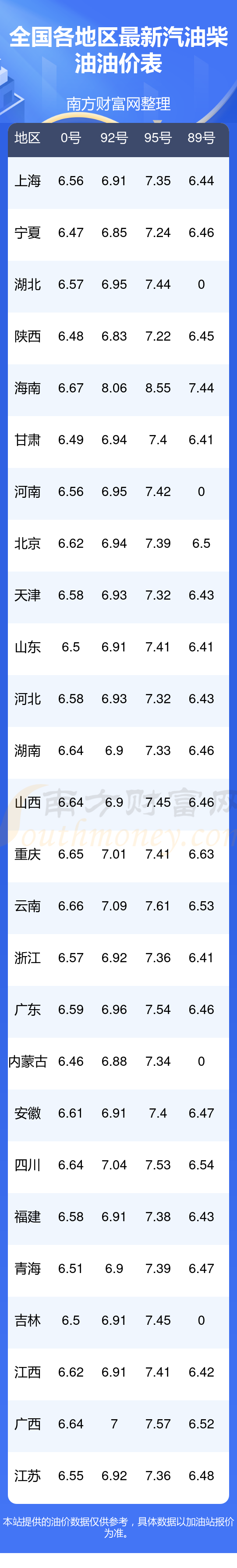 2025年11月16日全國油價調(diào)整及最新汽油價格表