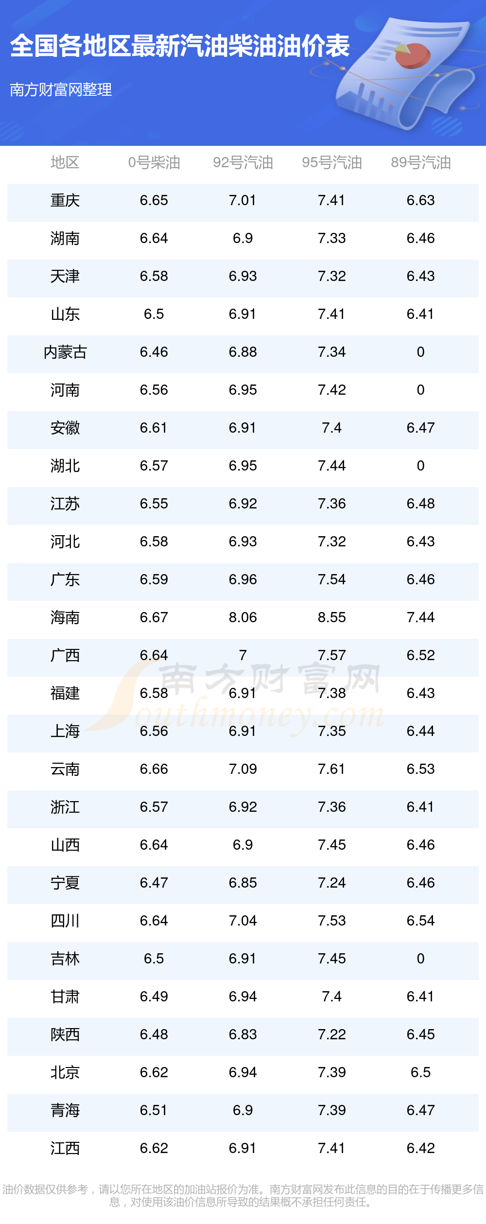 全國各地區(qū)2025年最新汽油價(jià)格表