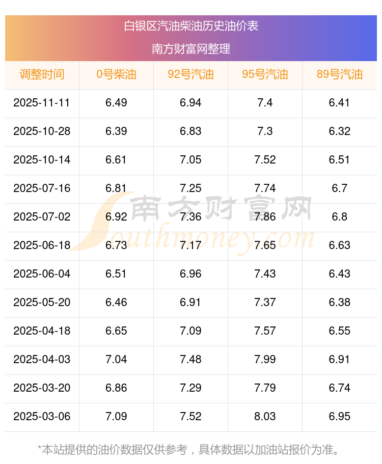白銀區(qū)歷史油價(jià)表