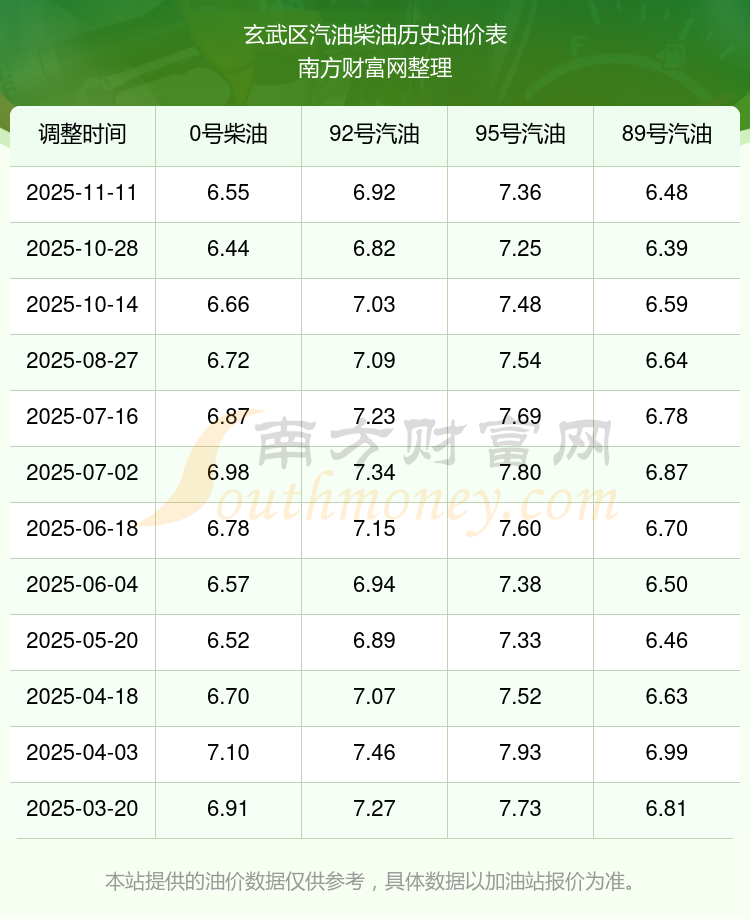 玄武區(qū)歷史油價表