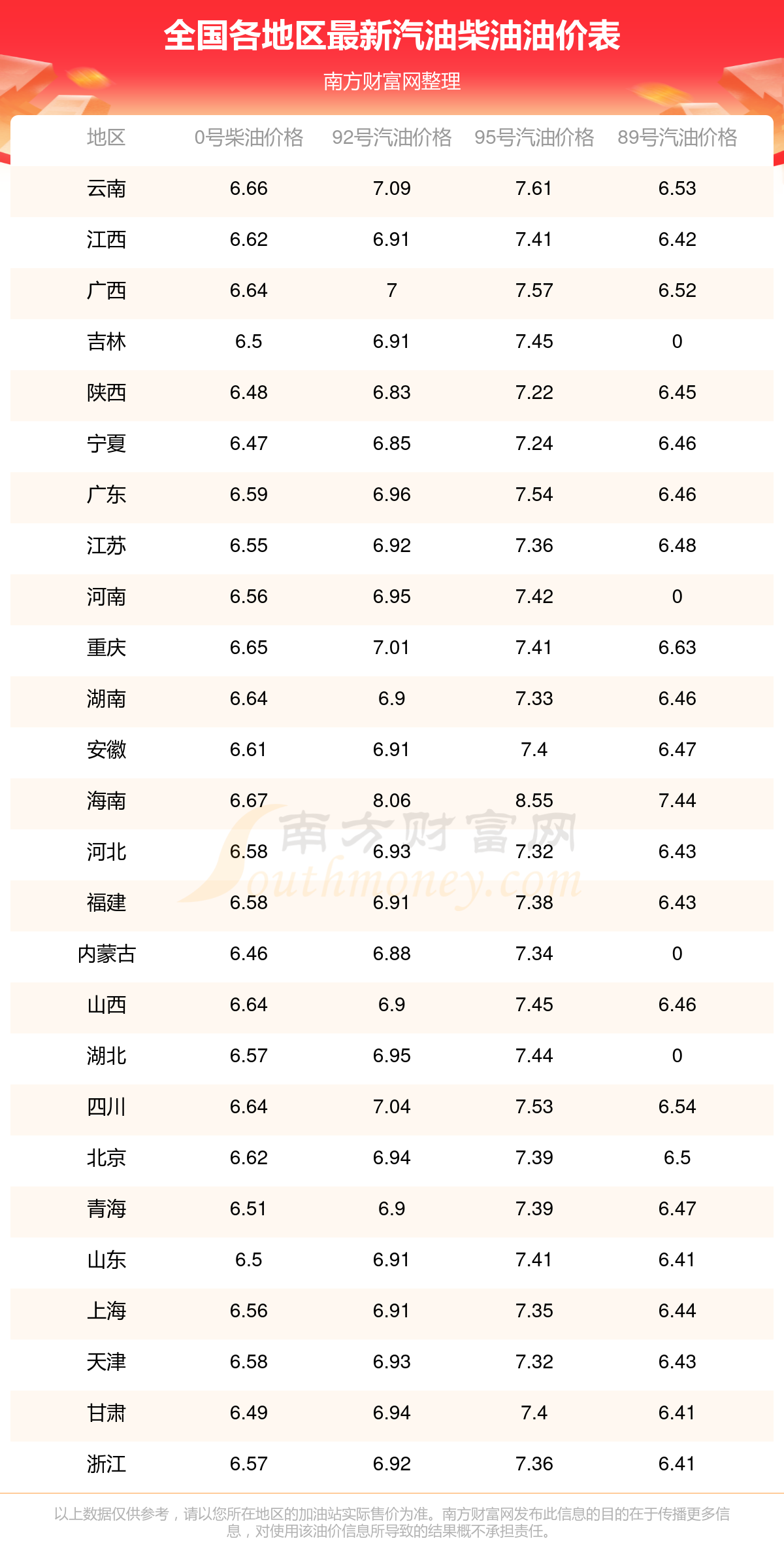 2025年11月16日全國油價調(diào)整及最新汽油價格表