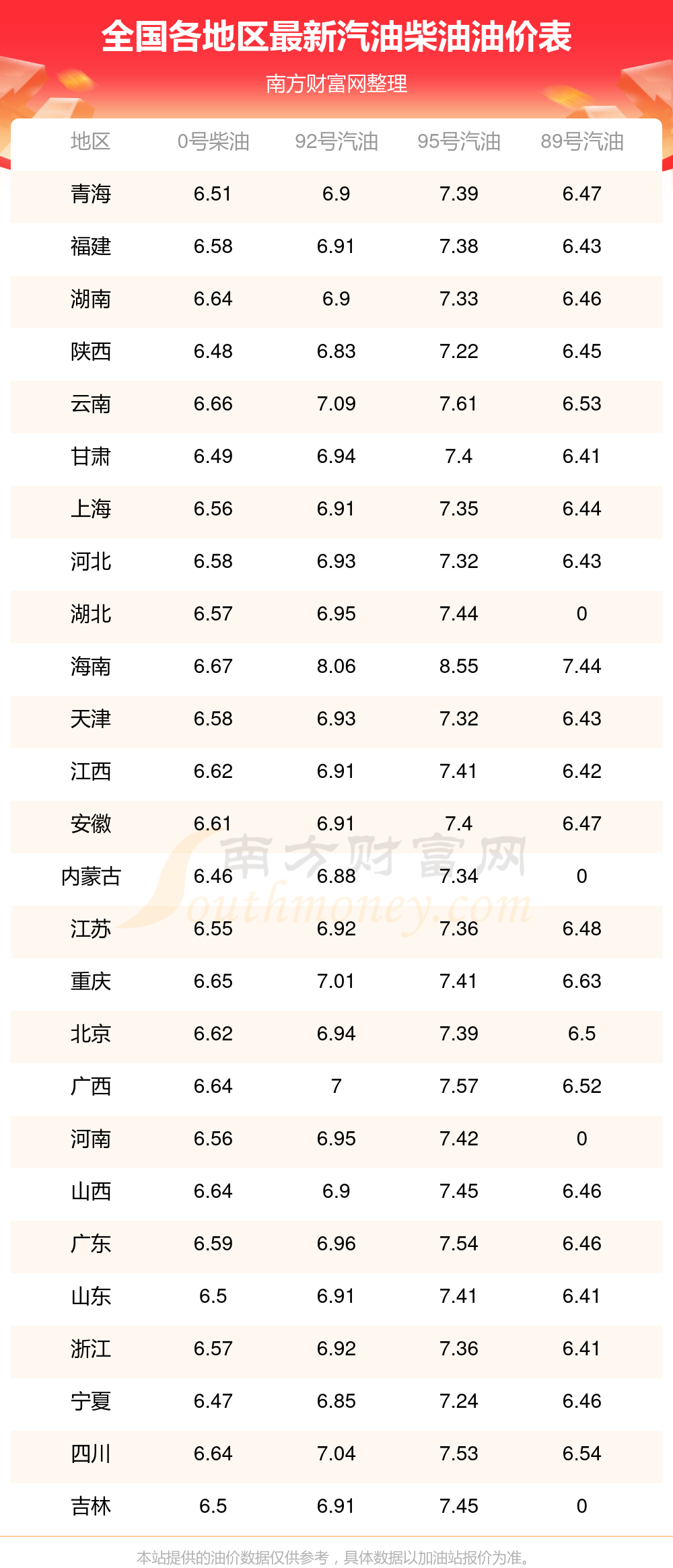 本站提供的油價數據僅供參考,具體數據以加油站報價為準。