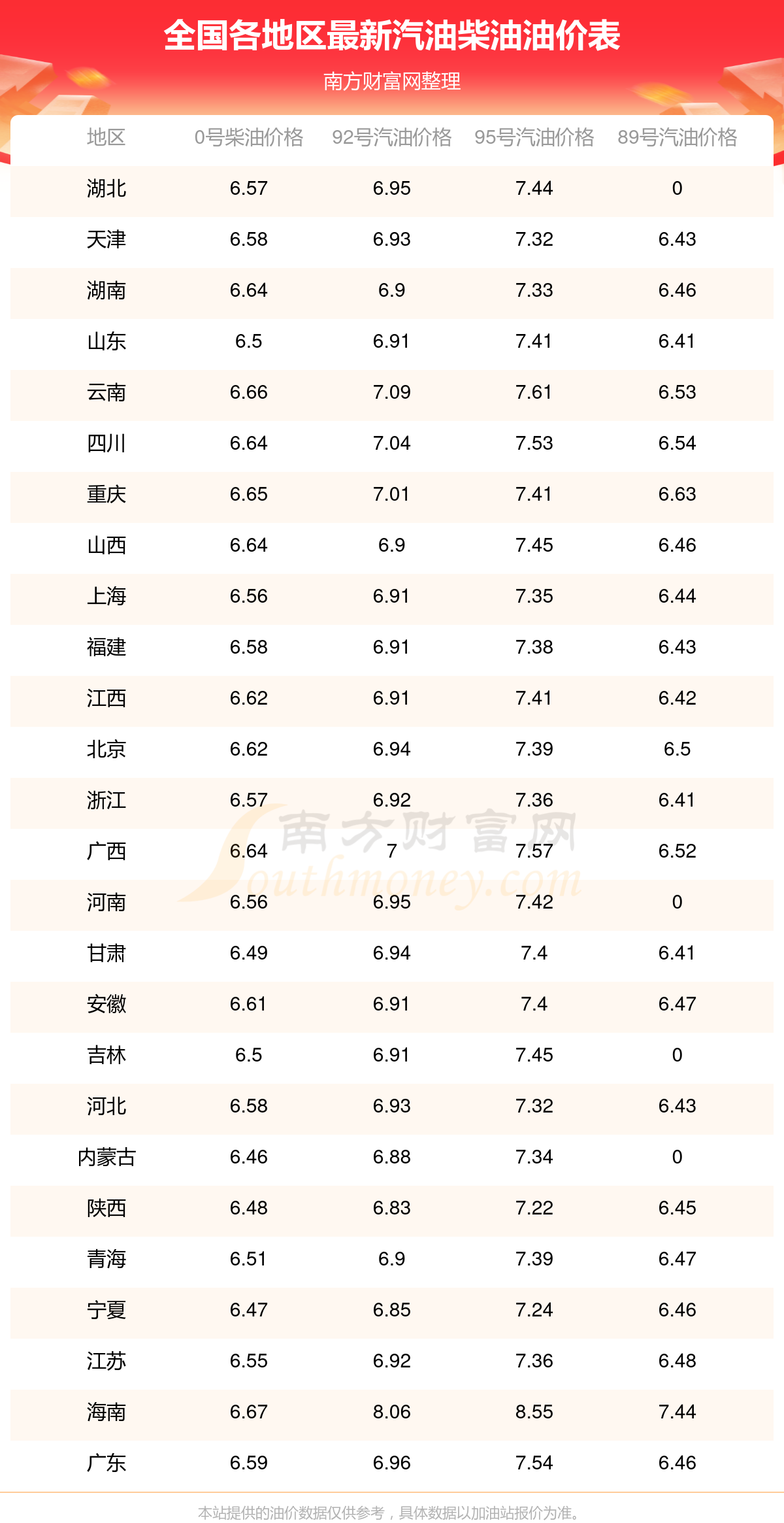 2025年11月16日全國油價調(diào)整及最新汽油價格表