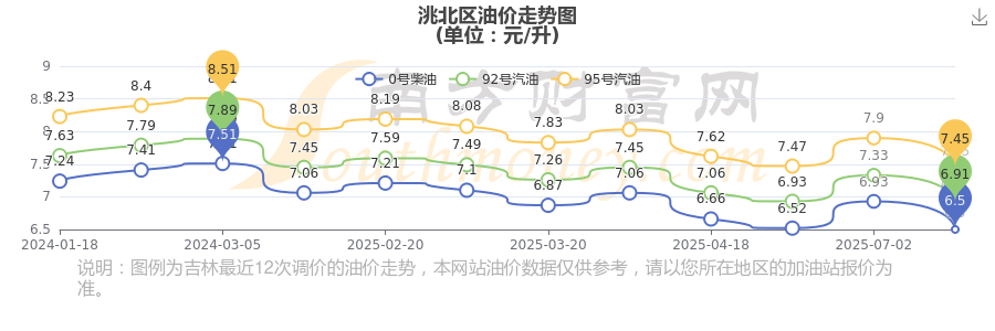 洮北區(qū)11月16日0號柴油歷史油價調(diào)整走勢圖