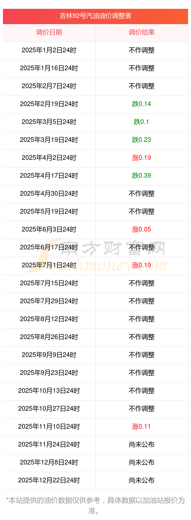 11月油價(jià)調(diào)整時(shí)間:11月10日、11月24日
