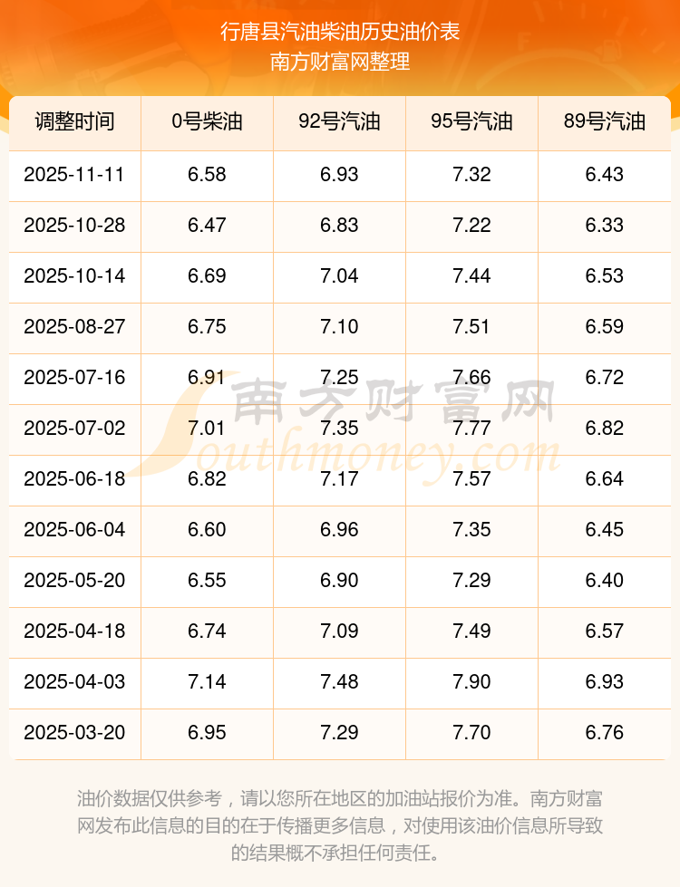 2025年行唐縣油價(jià)調(diào)整時(shí)間表