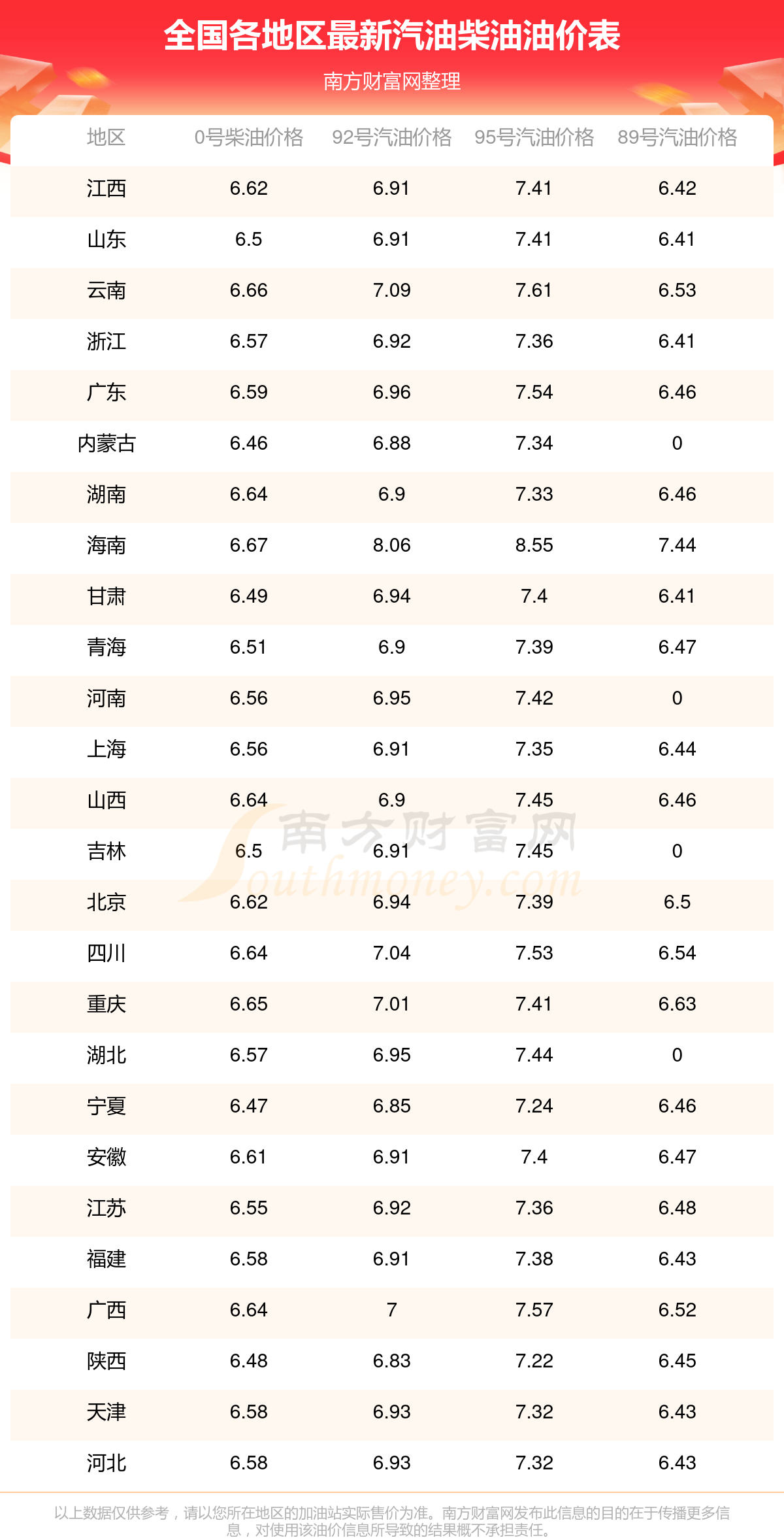 2025年11月16日全國油價調(diào)整及最新汽油價格表