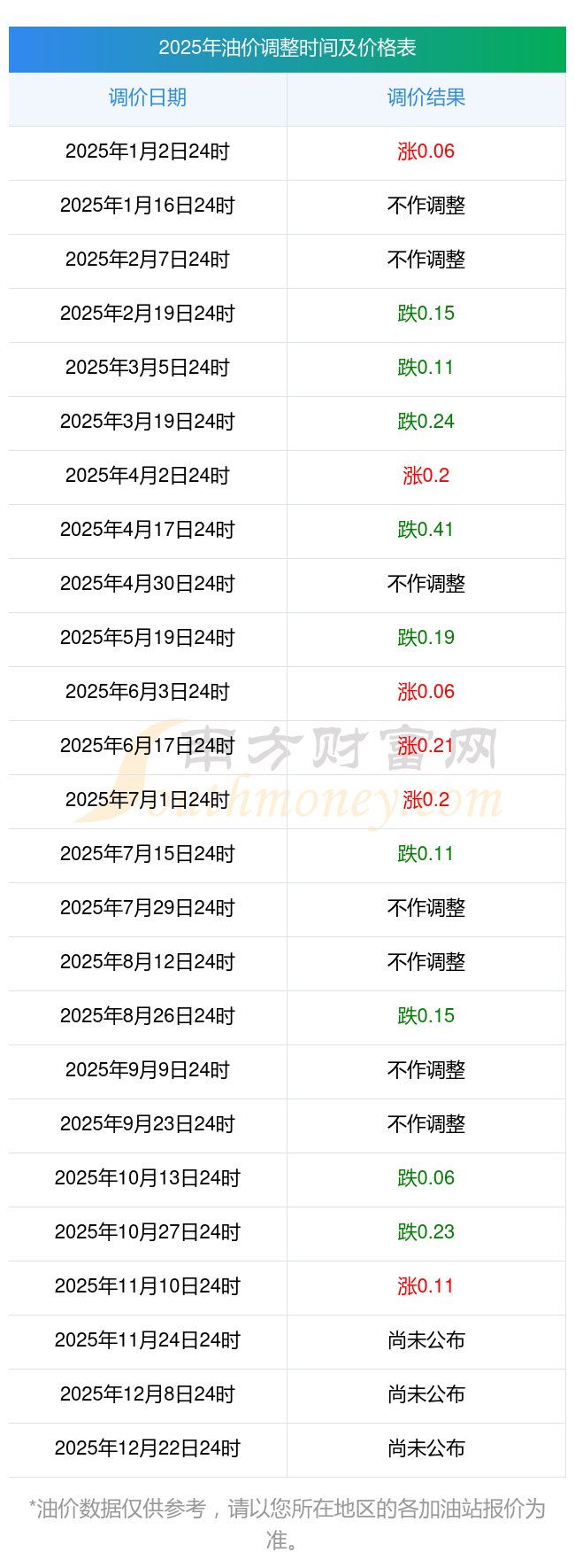 嵐皋縣11月16日油價(jià)調(diào)整時(shí)間及價(jià)格表